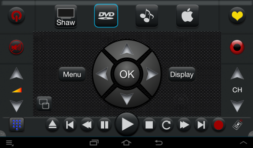 In Watch Media mode you typically have the controls which are familiar to most DVD / Blu-ray users. Most important is the big blue Play Button in the middle. Before attempting to play, make sure that there is a disk loaded in the player. Different combinations of buttons will appear depending on the device.